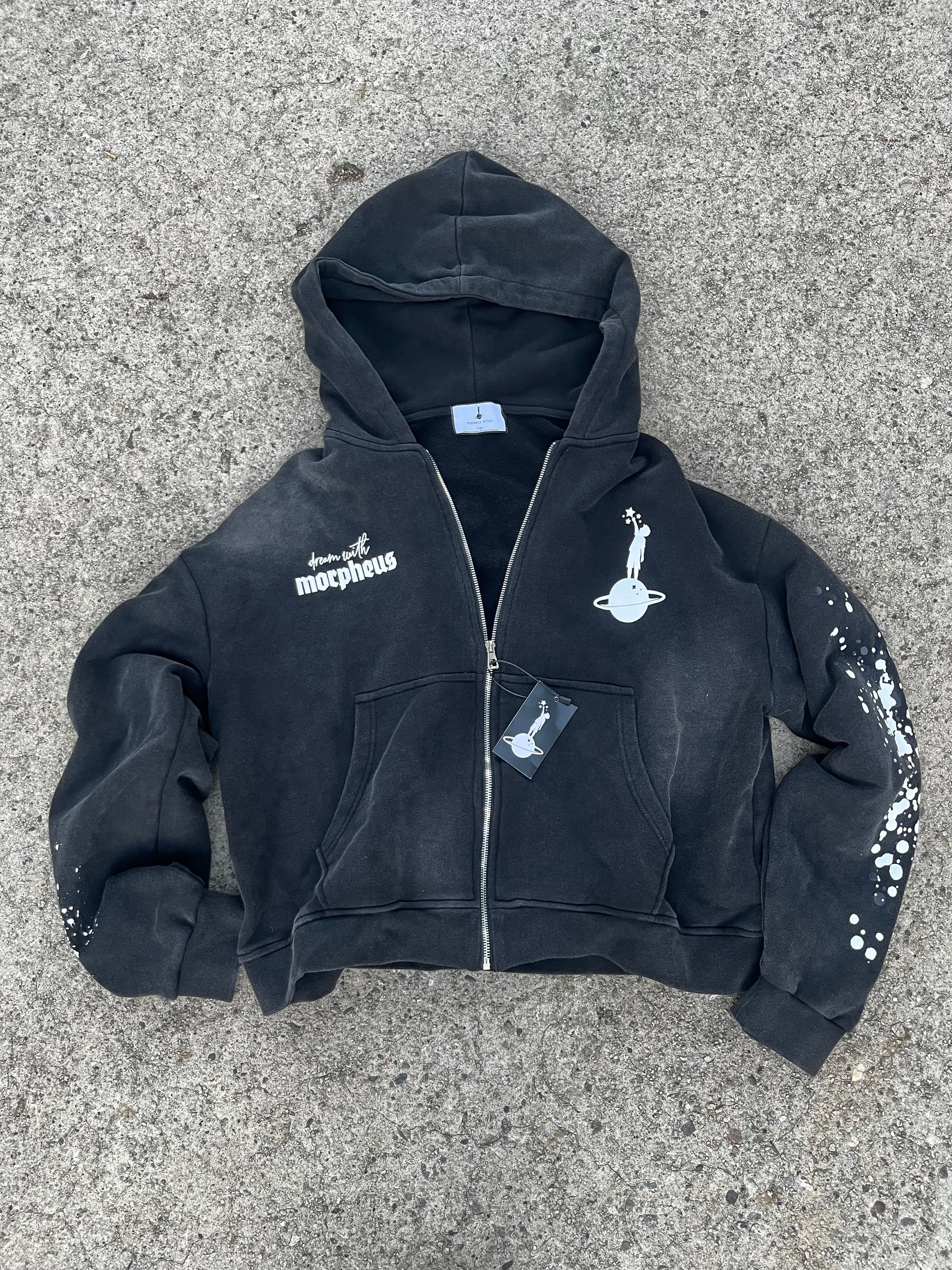 This zipup, "Dream With" is a unique choice because it combines premium materials with a one-of-a-kind design, offering a perfect blend of comfort and contemporary style.